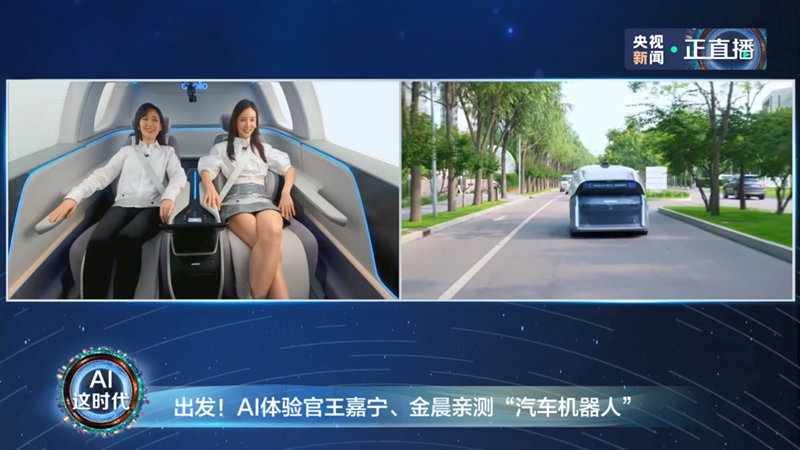 在百度世界大会阿那亚分会场,金晨和央视主持人王嘉宁作为百度AI体验官第一时间体验了汽车机器人。体验开始前,两位体验官通过AI小助理呼叫了一辆汽车机器人。行驶中,汽车机器人全程自动驾驶,顺利应对无保护左转、避让行人和其他车辆等复杂场景,让体验官感觉非常平稳安全,媲美老司机。为乘客打造的超大专属智能空间,让金晨直呼“太贴心啦,好想拥有一辆”。