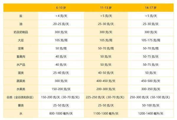 中国营养学会推出的《学龄儿童膳食指南(2022)》的膳食标准为:
